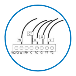 - Uses standard thermostat connections (C, RC, RH, W1, W2/0,Y1,Y2,G) – 18 AWG